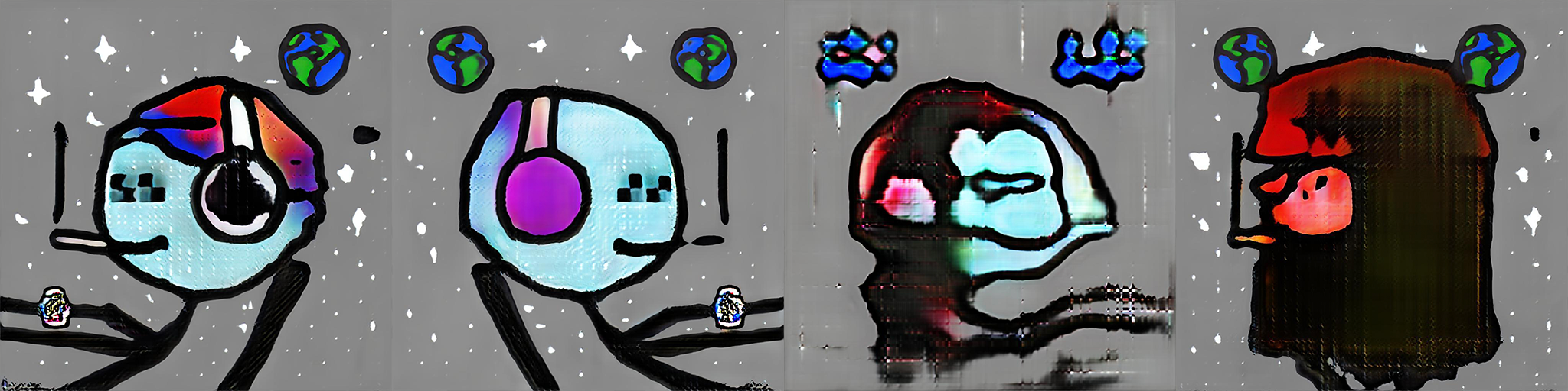 The GAN microwave even went so far as to mix up some superfresh mp4s of the famous mfer 1/1’s. If you will notice, the movies start out with the initial image of the mfer archetype (the central character reaching toward a computer, a father figure and semblance of text above). But from there, things get nuts. The GAN will take you on a journey of magic & excitement, with text prompts straight out of “The Poet’s Guide to Iambic Pentameter and How to F That Shit Up”—these NFTs are the cream of the crop of the bganmferverse. And not to be undone, apparently the GAN surfed OpenSea for a while and made a few more 1/1s of other projects too: things like creepz, World of Women, Yats, j48baforms, Invisible Friends and Black Lotus, plus many more. TAKE A LOOK!